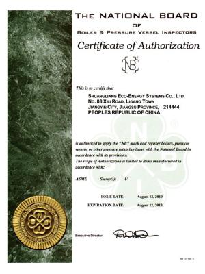 ใบรับรองมาตรฐานผลิตภัณฑ์ประหยัดพลังงานจีน (เครื่องทำความเย็นระบบการดูดซึมแบบไอน้ำสองชั้น รุ่น SXZ8)